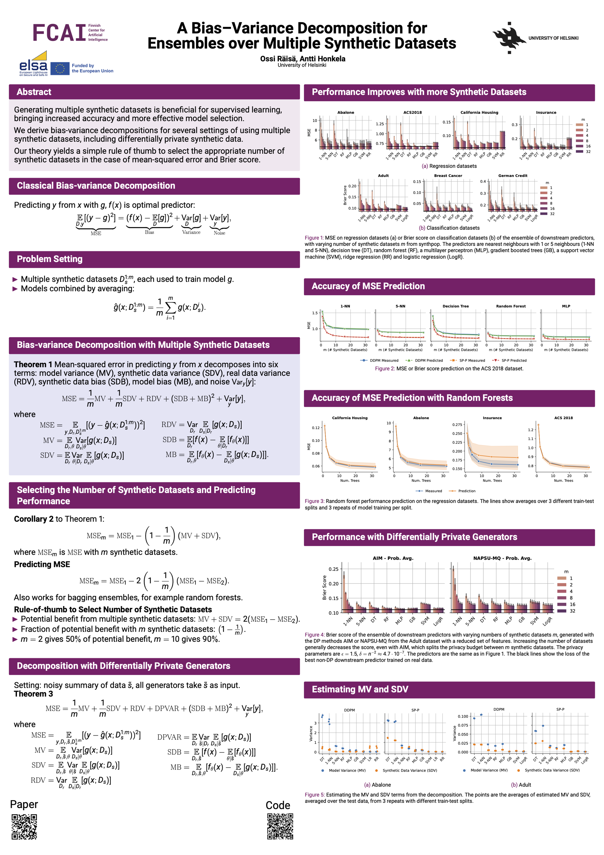 A Bias-Variance Decomposition for Ensembles over Multiple Synthetic Datasets