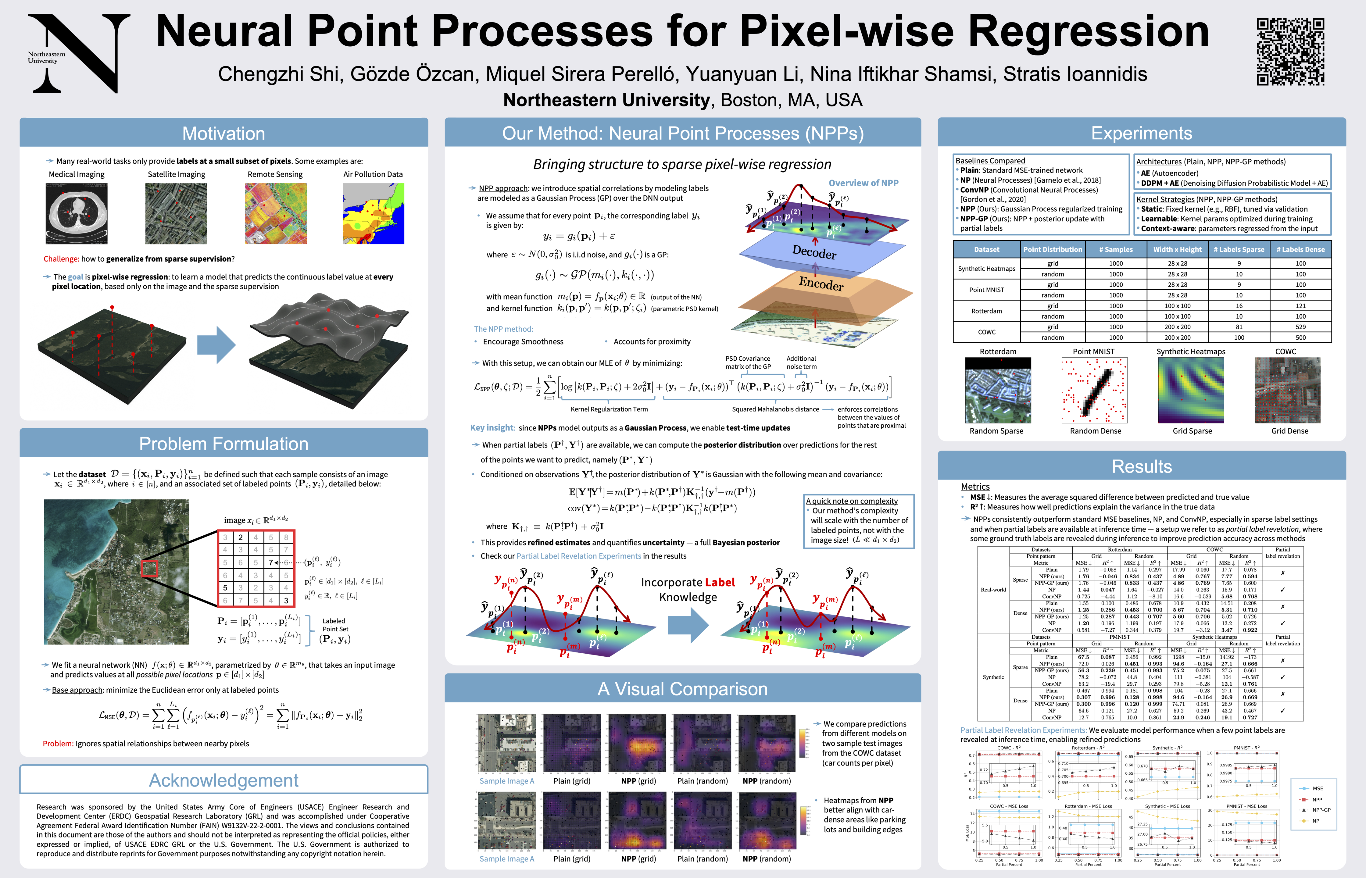 We study pixel-wise regression problems with sparsely annotated images. Traditional regression methods based on mean squared error emphasize pixels with labels, leading to distorted predictions in unlabeled areas. To address this limitation, we introduce Neural Point Processes, a novel approach that combines 2D Gaussian Processes with neural networks to leverage spatial correlations between sparse labels on images. This approach offers two key advantages: it imposes smoothness constraints on the model output and enables conditional predictions when sparse labels are available at inference time. Empirical results on synthetic and real-world datasets demonstrate a substantial improvement in mean-squared error and $R^2$ scores, outperforming standard regression techniques. On the real-world dataset COWC, we achieve an $R^2$ of $0.769$ with $81$ out of $40,000$ ($0.2$%) points labeled, while standard regression loss (MSE) results in an $R^2$ of $0.060$.