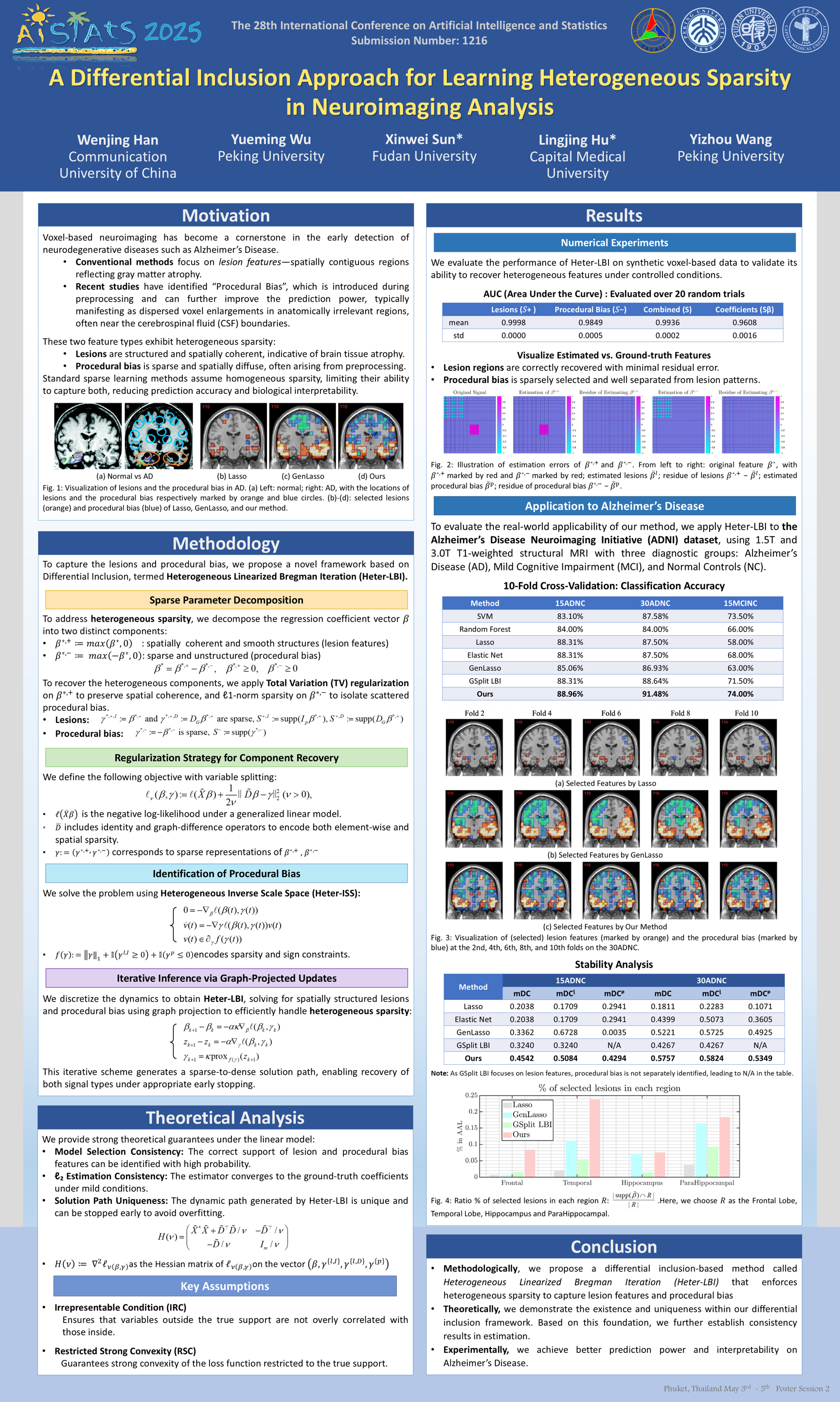 In voxel-based neuroimaging disease prediction, it was recently found that in addition to lesion features, there exists another type of feature called "Procedural Bias", which is introduced during preprocessing and can further improve the prediction power. However, traditional sparse learning methods fail to simultaneously capture both types of features due to their heterogeneity in sparsity types. Specifically, the lesion features are spatially coherent and suffer from volumetric degeneration, while the procedural bias refers to enlarged voxels that are dispersedly distributed. In this paper, we propose a new method based on differential inclusion, which generates a sparse regularized solution path on a couple of parameters that are enforced with heterogeneous sparsity to capture lesion features and the procedural bias separately. Specifically, we employ Total Variation with a non-negative constraint for the parameter associated with degenerated and spatially coherent lesions; on the other hand, we impose $\ell_1$ sparsity with a non-positive constraint on the parameter related to enlarged and scatterly distributed procedural bias. We theoretically show that our method enjoys model selection consistency and $\ell_2$ consistency in estimation. The utility of our method is demonstrated by improved prediction power and interpretability in the early prediction of Alzheimer's Disease.